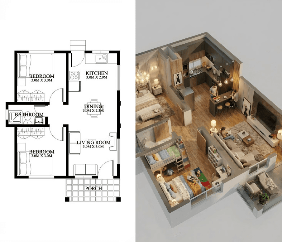 Você aprende a gerar uma linha completa de entregáveis: Isométrico , renders por ambiente e detalhes específicos da casa — sem perder proporção, sem distorcer layout, sem “cara de IA”.